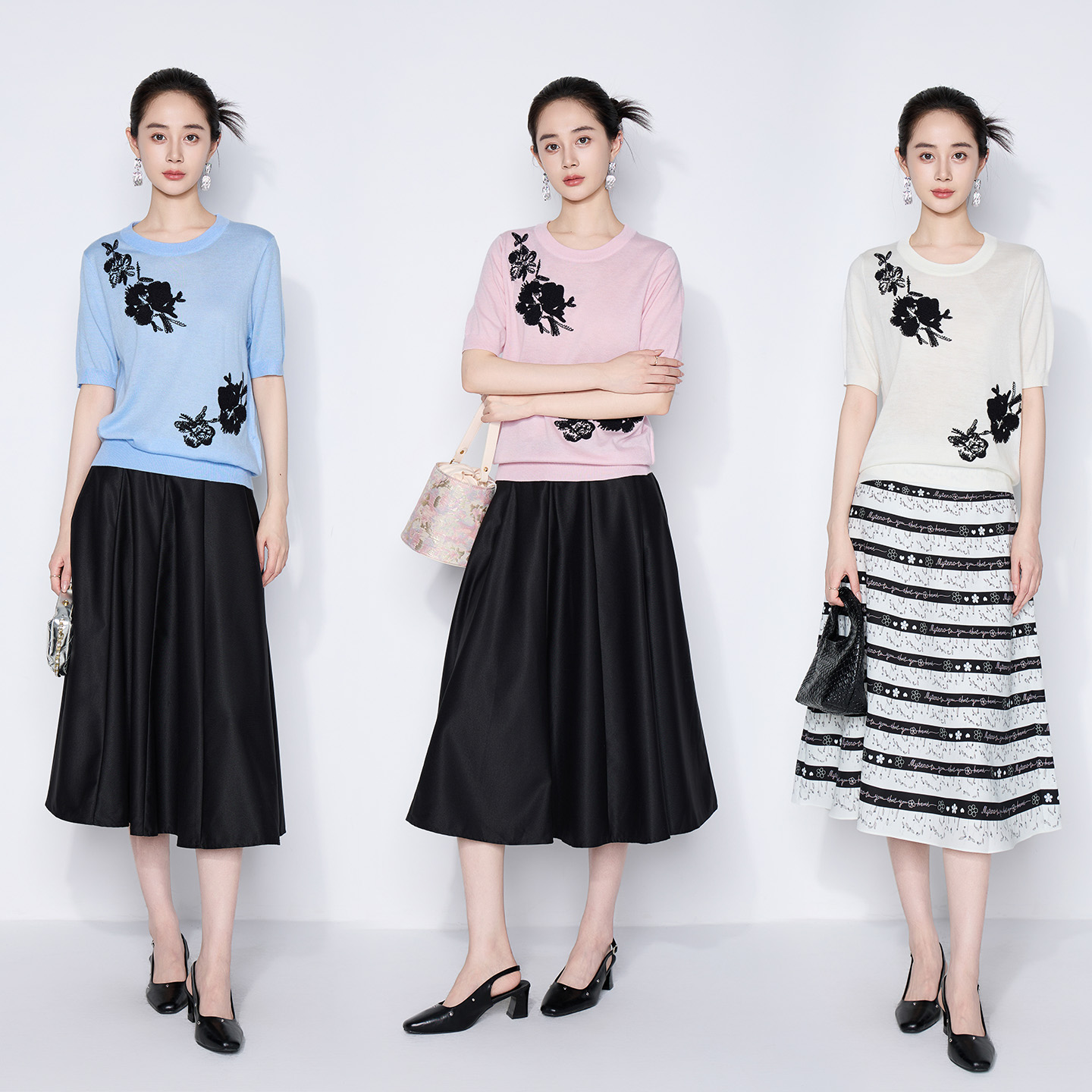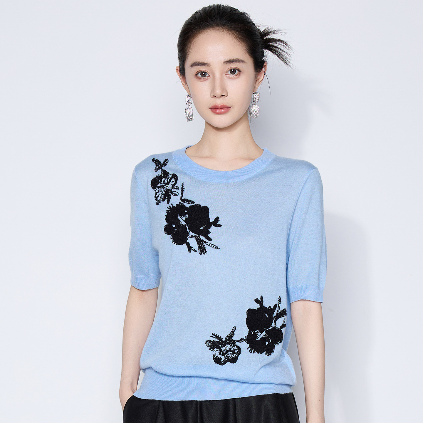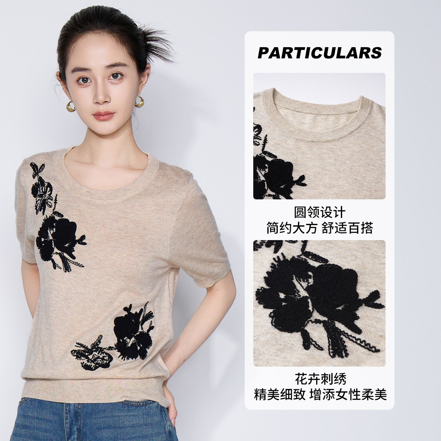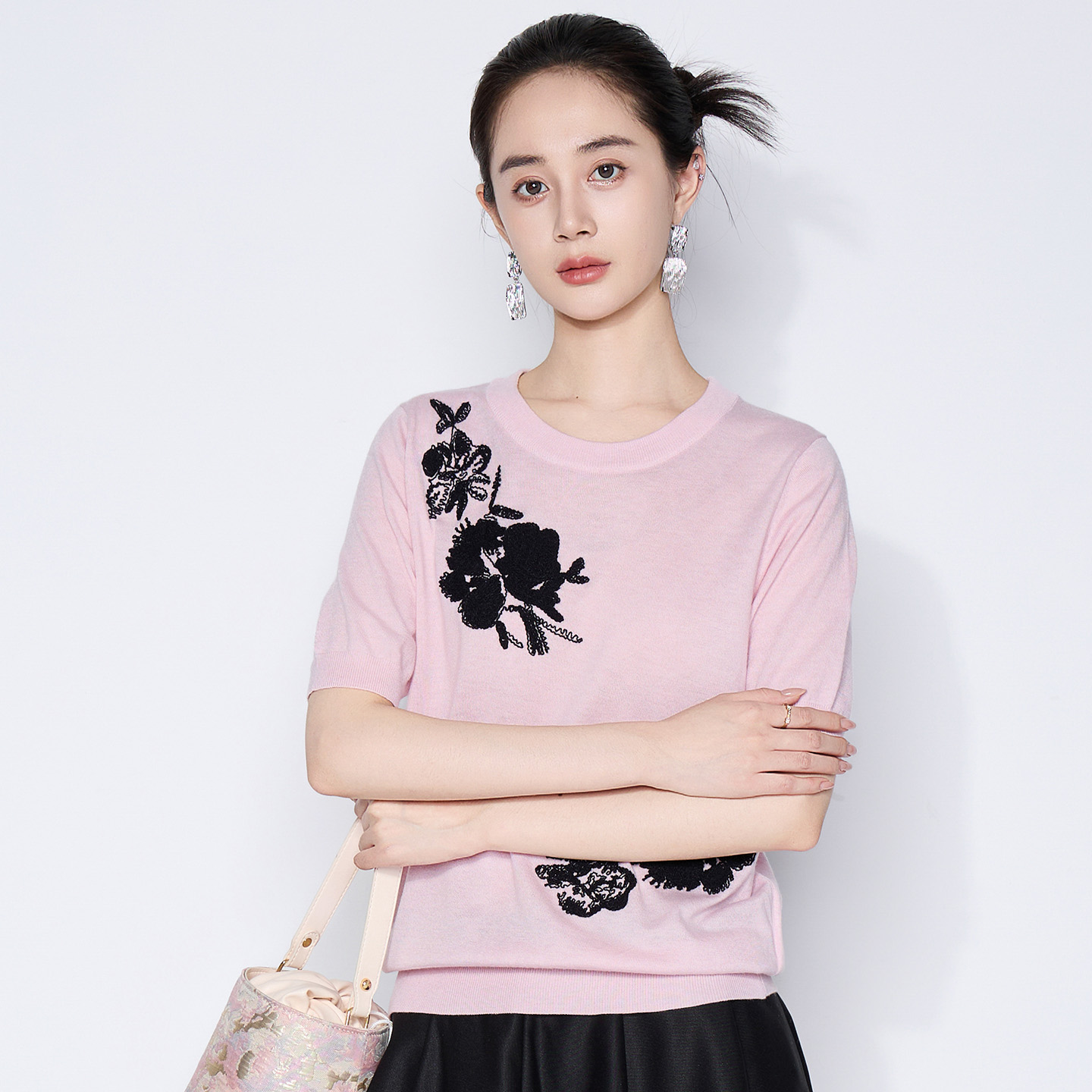 马天奴2025夏季新款撞色提花针织上衣圆领短袖小衫时尚休闲百搭女