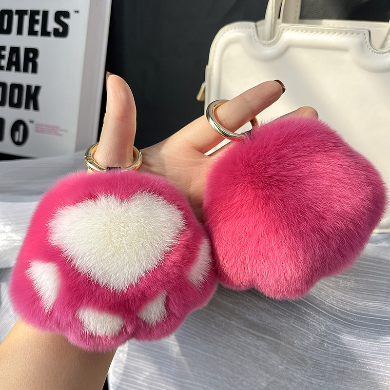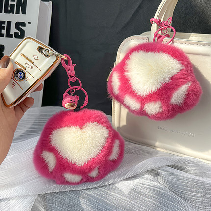 【可爱小猫爪】獭兔毛汽车钥匙扣挂件ins网红毛绒书包包挂饰礼物
