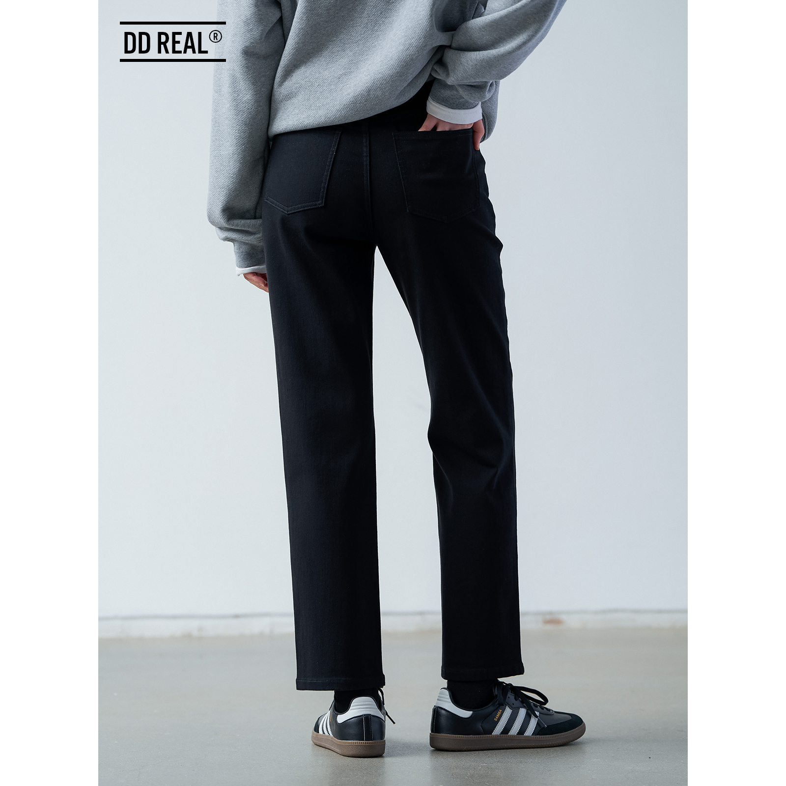 DD 年度刚需小黑裤_不易褪色黑色弹力加绒高腰小直筒九分牛仔裤女