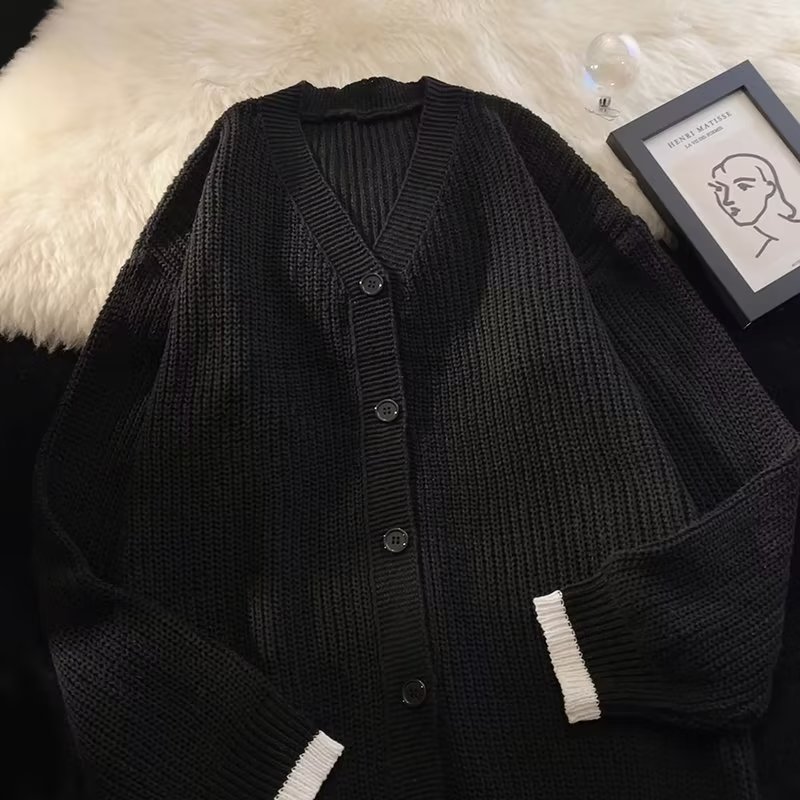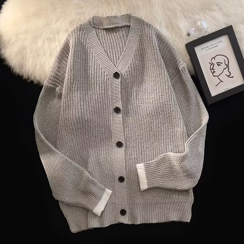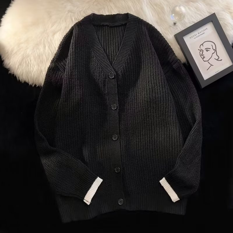 2025秋冬新款开衫v领毛衣美式复古休闲慵懒风V领针织衫男大码外套