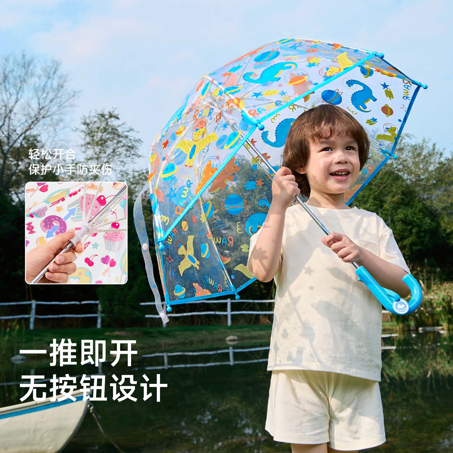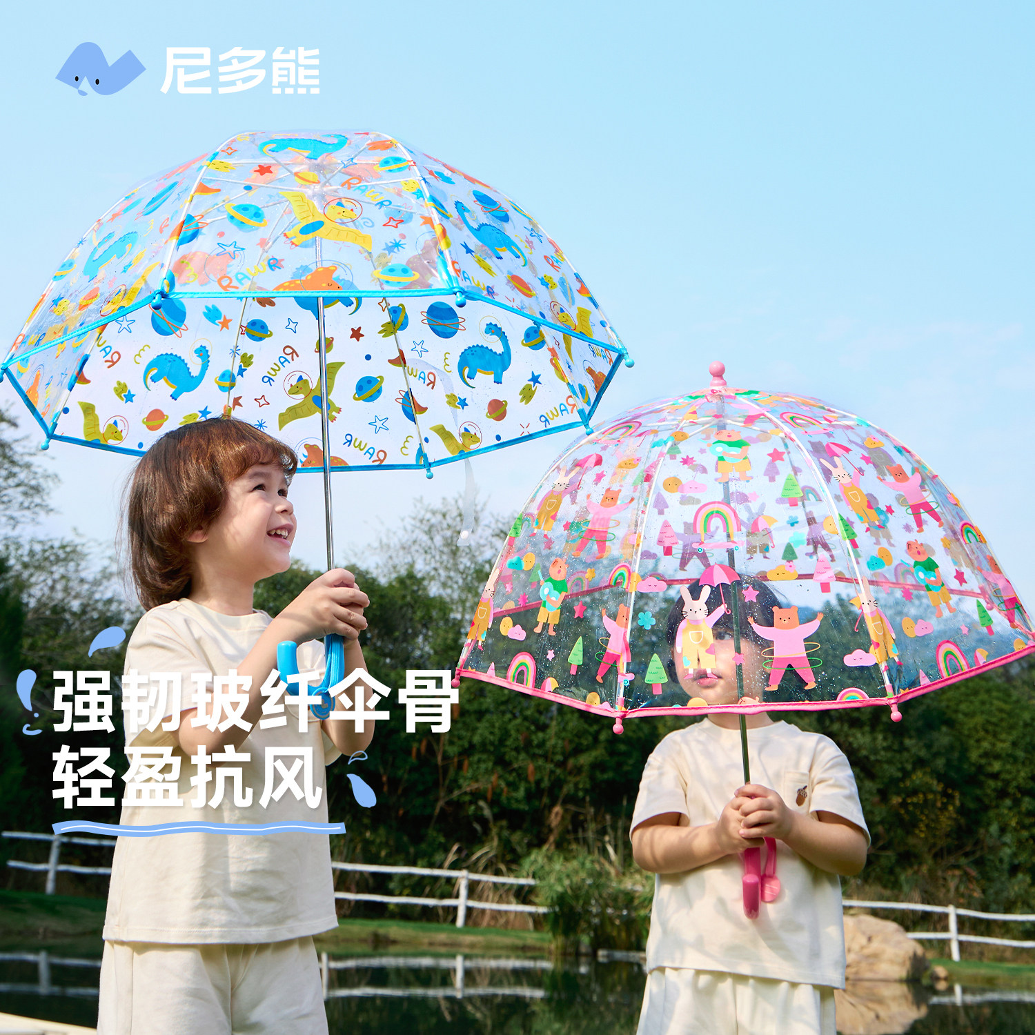 尼多熊2026儿童雨伞男孩女孩宝宝透明伞中小童长柄伞学生上学专用
