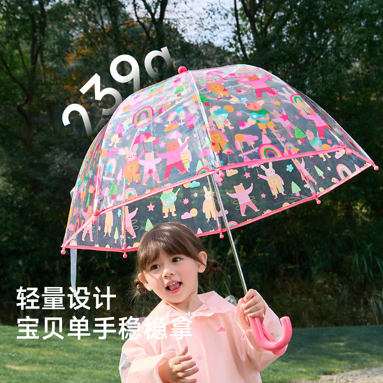 尼多熊儿童透明雨伞长柄便携防雨
