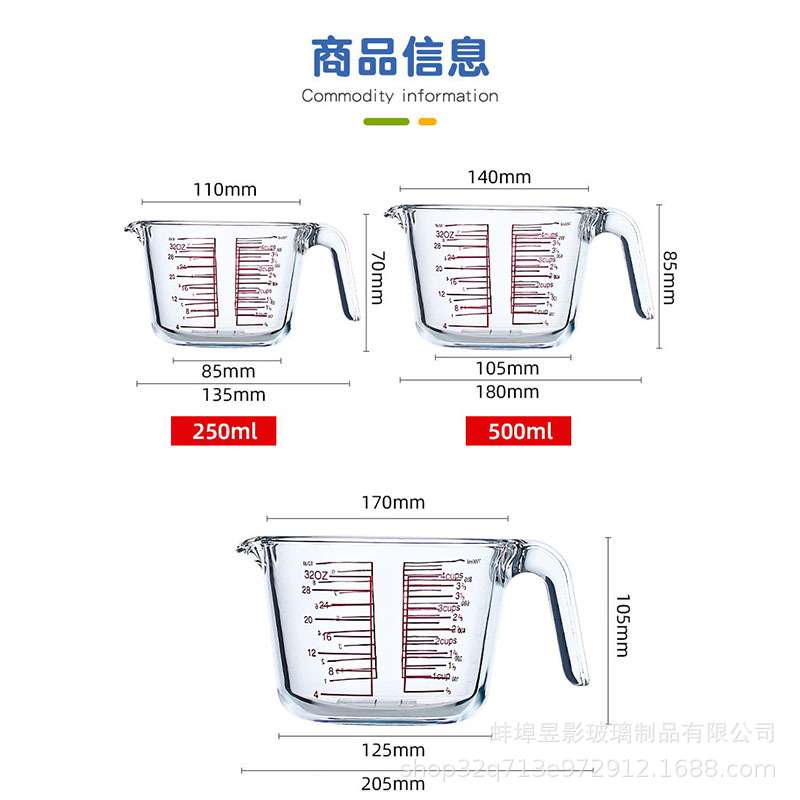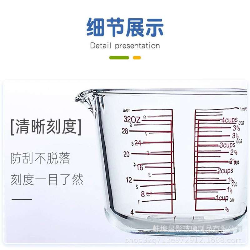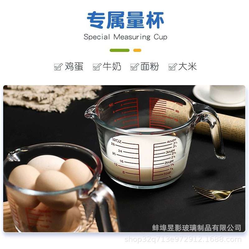 大容量玻璃量杯带刻度耐高温烘焙厨房毫升计量水杯子打蛋升级加厚