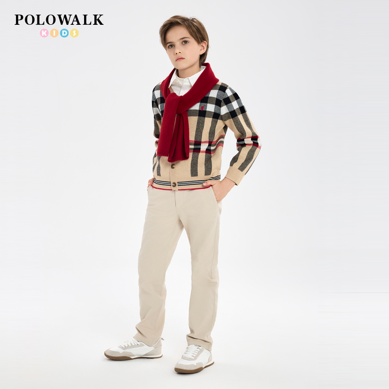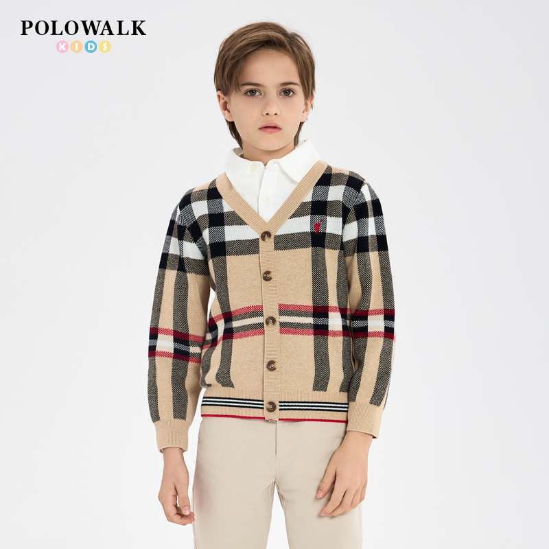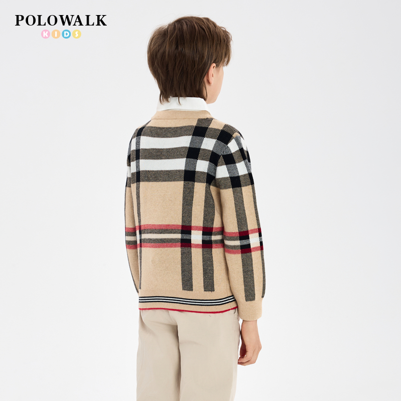 POLOWALK童装2024秋季新款男童纯棉假两件针织衫儿童衬衫领毛衣潮