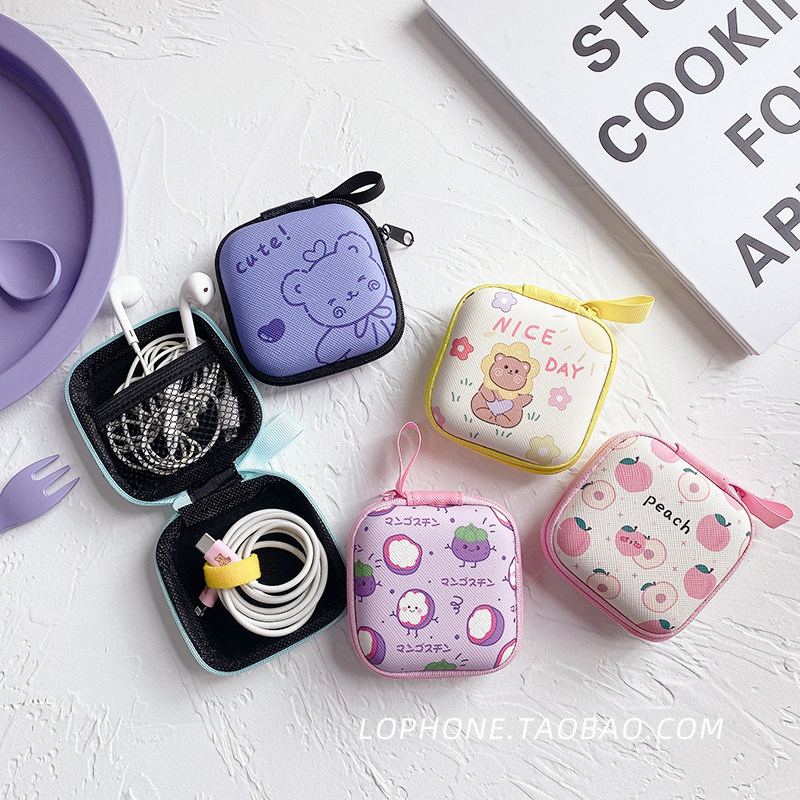 水果无线蓝牙耳机收纳包可爱卡通数据线收纳盒迷你零钱包整理盒子