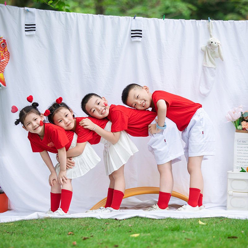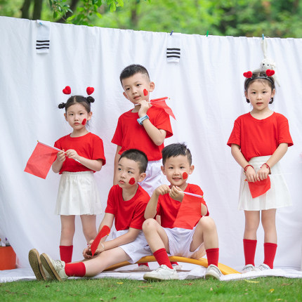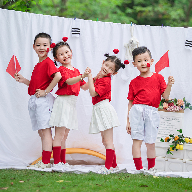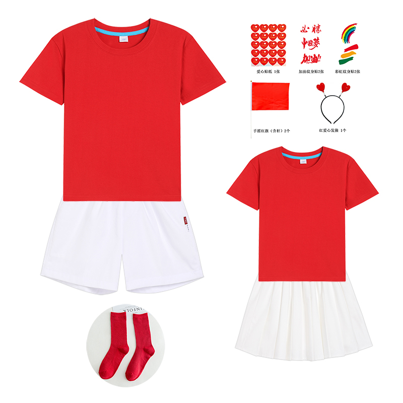 儿童成人红色短袖白色裙子裤子演出服班班有歌声合唱服运动会班服