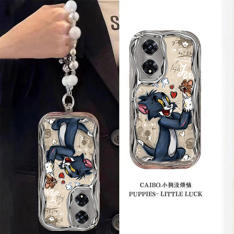 适用于OPPOA98手机壳新款5G电镀A2x奶油纹A3Pro可爱A58x防摔A11x保护套A1猫和老鼠A72A35卡通A55创意A92s女款