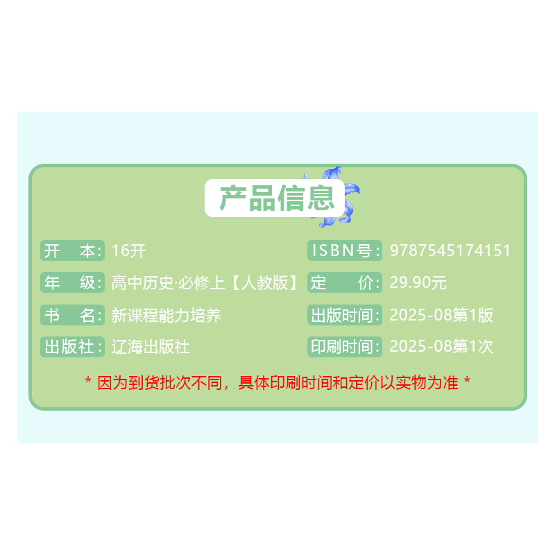2025秋 配人教版 新课程能力培养 高中历史必修上学习手册中外历史纲要上册 高一上册历史同步配套练习 辽海出版社