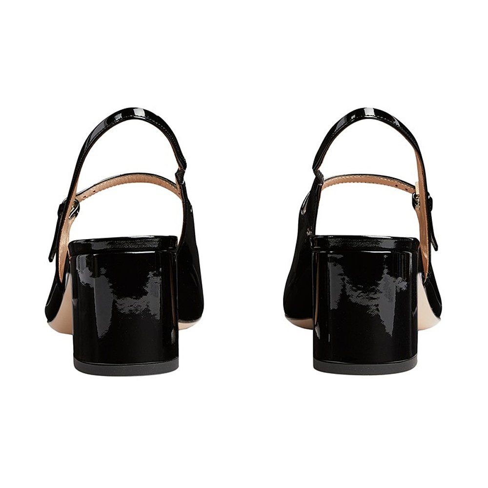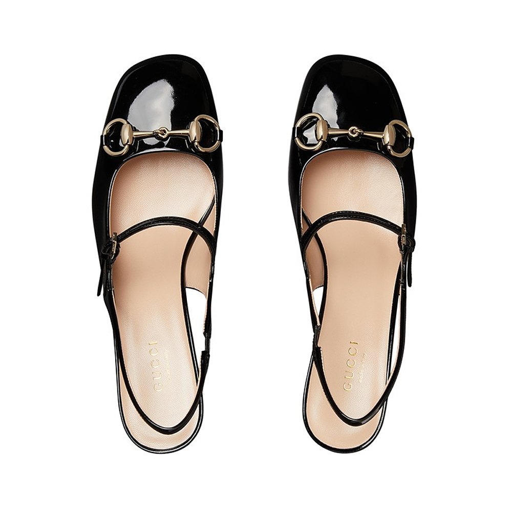 GUCCI/古驰24新款 女士亮黑色漆皮金色马衔扣穆勒中跟鞋