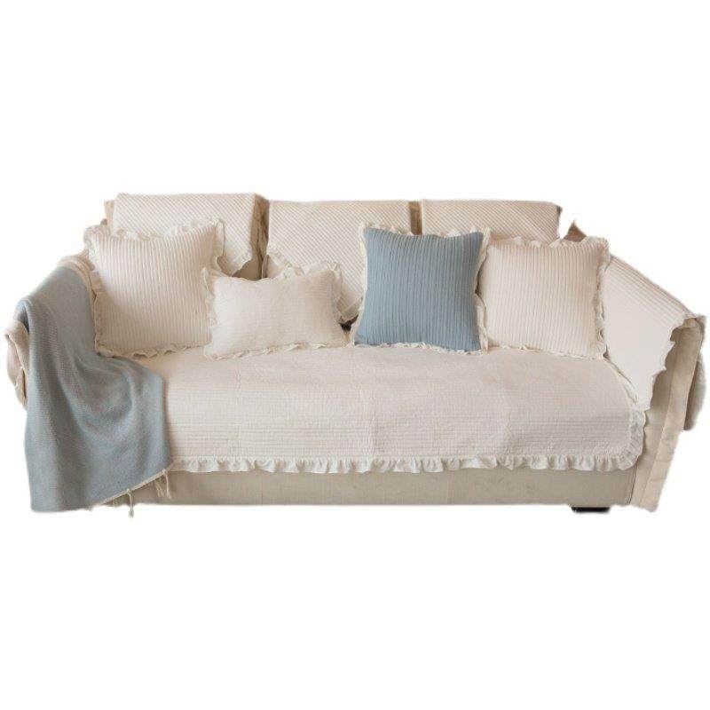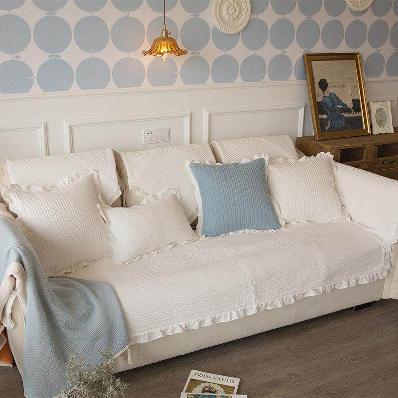 素色荷叶边四季通用防滑沙发垫高温水洗纯棉布艺套罩巾小清新坐垫