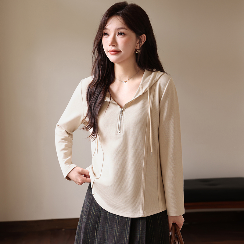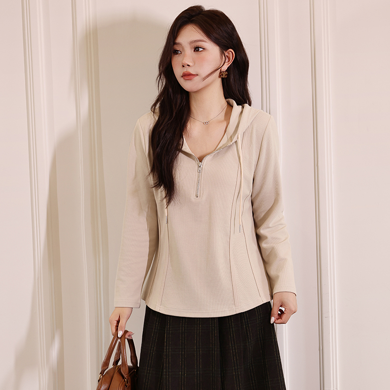 绮娑女装2025秋冬新款显瘦大码胖MM上衣连帽棉套头休闲长袖T恤衫