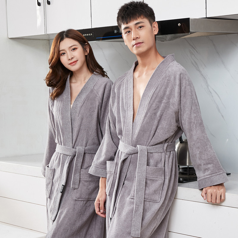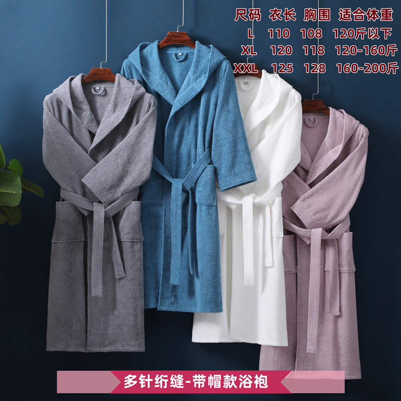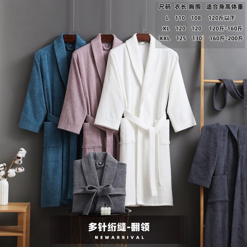 纯棉浴袍毛巾料男女浴衣日式吸水中长款五星酒店睡袍全棉情侣一对