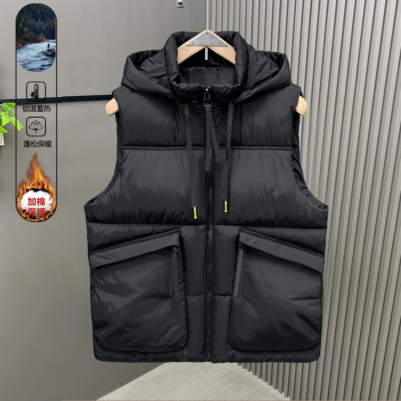 连帽可拆棉马甲男2025秋冬休闲背心坎肩保暖马夹大码加厚潮流外套