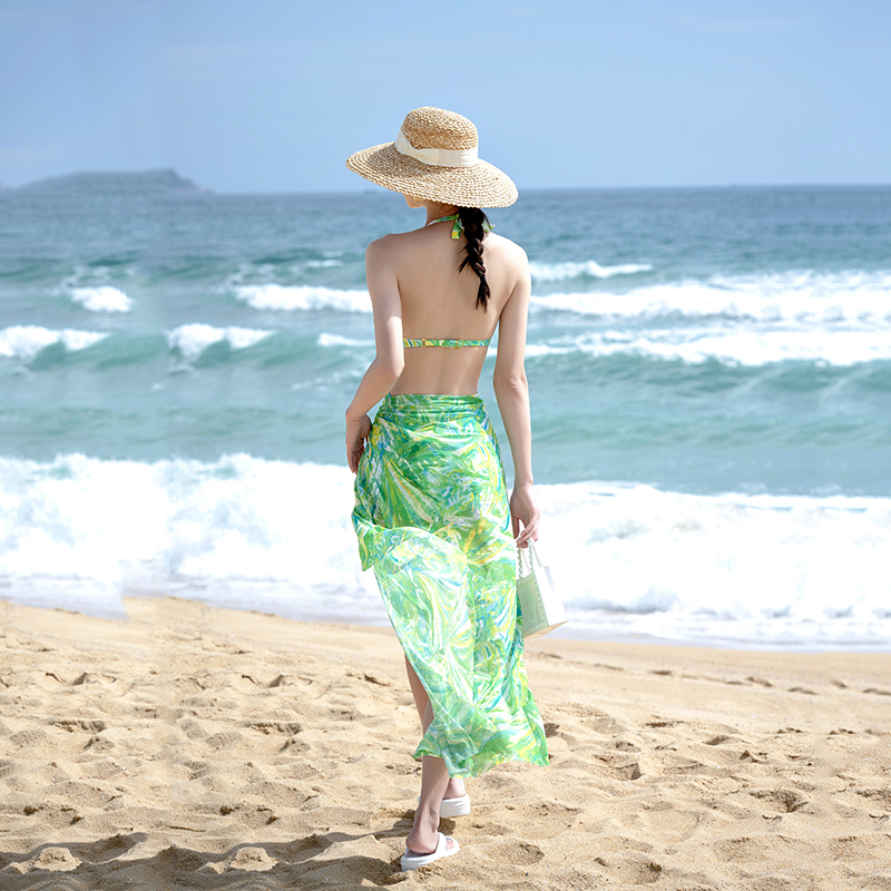 连体裙式女两件套泳衣