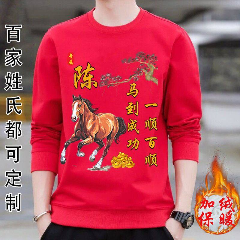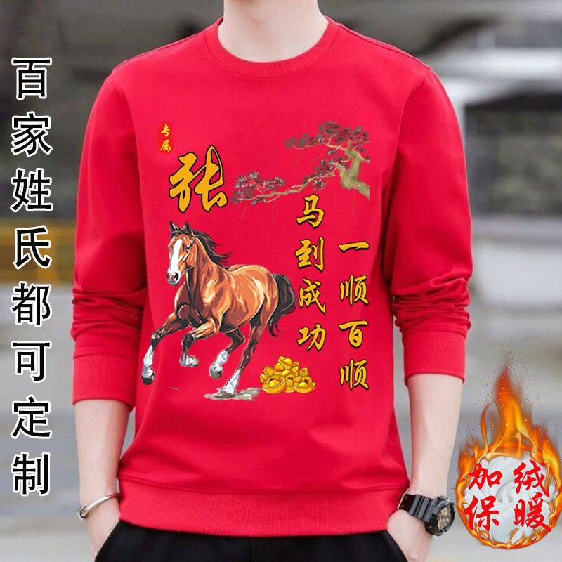 2026马年本命年卫衣男女冬季加绒保暖红色新年情侣姓氏上打底衣服