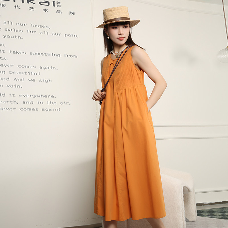 梵凯夏法式气质设计感无袖A长裙