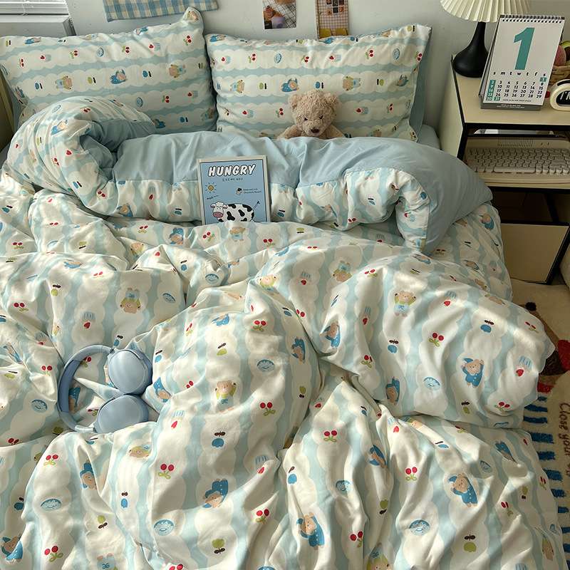 A类床上用品纯棉四件套全棉被套床单被罩学生2宿舍3单人床三件套4