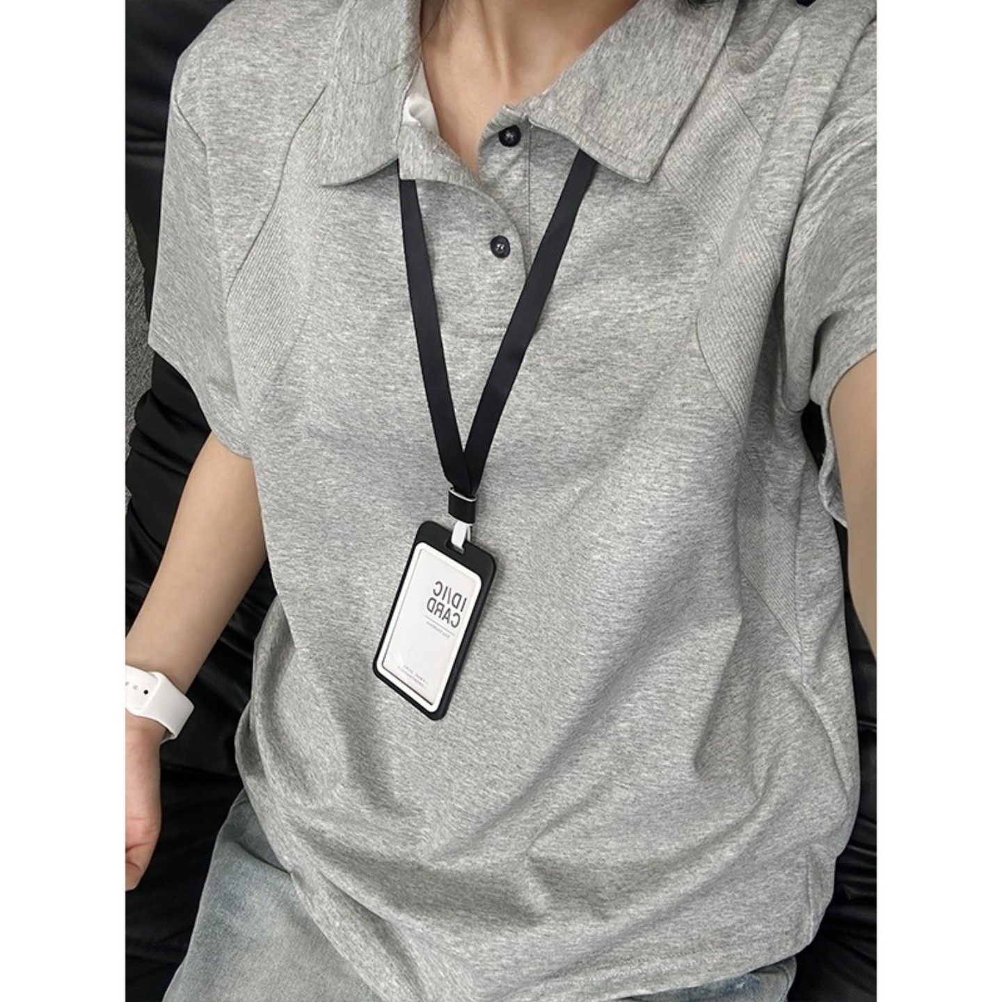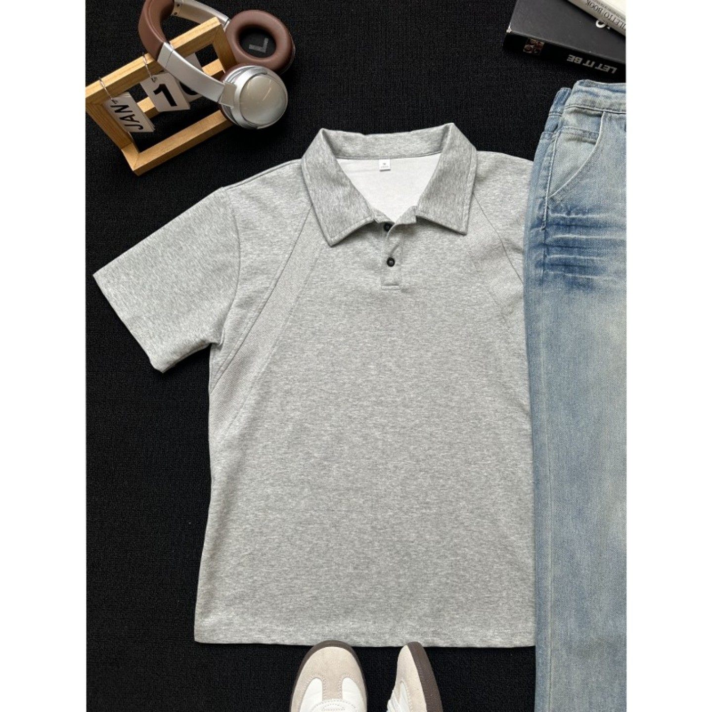 灰色太空棉拼接短袖polo衫男女夏季翻领正肩T恤美式重磅半袖上衣