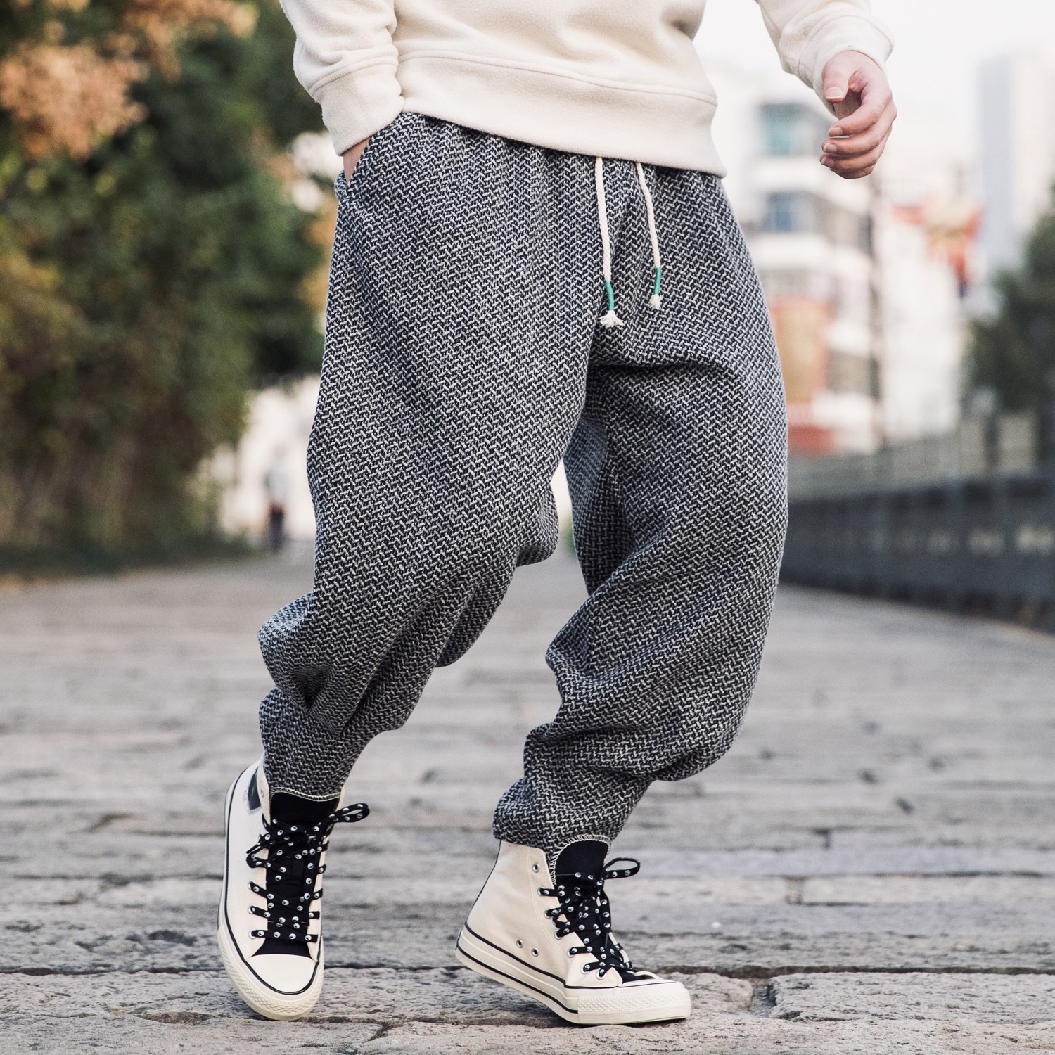 小脚休闲长裤毛呢长裤琳琅宽松男
