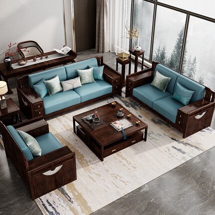 瑞银别墅沙发新中式乌金木檀木