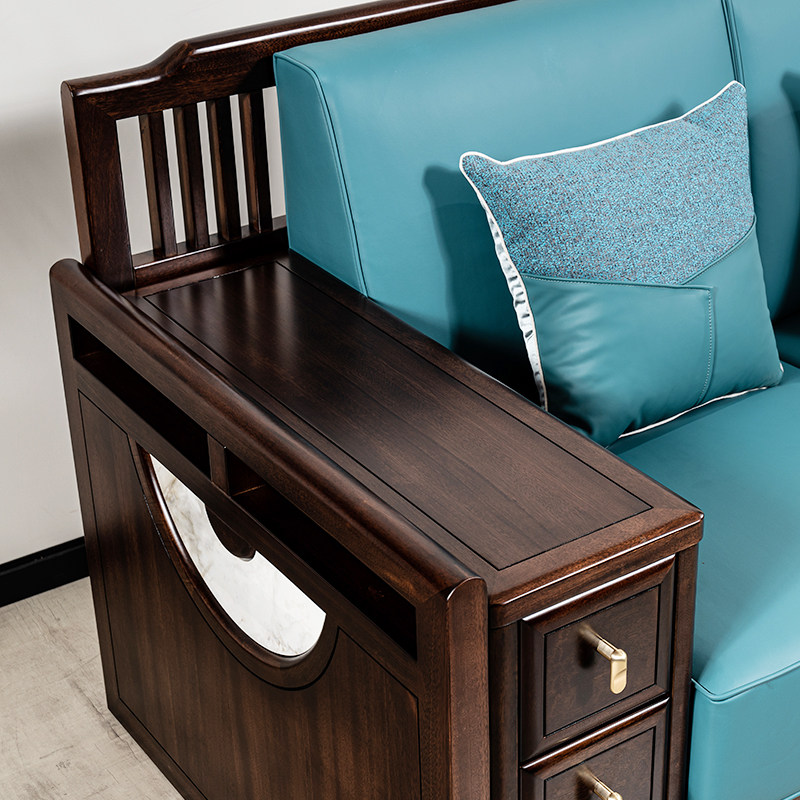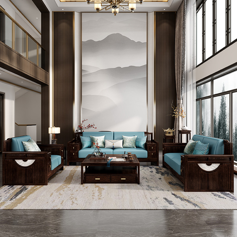 瑞银新中式乌金檀木实木皮沙发禅意客厅组合现代轻奢高端别墅家具