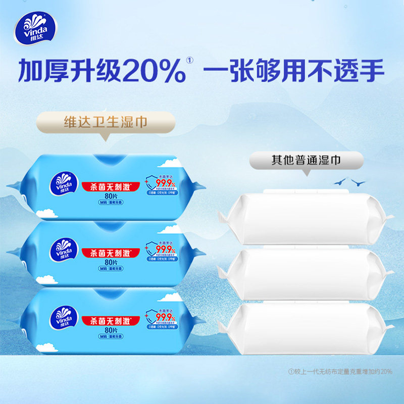维达杀菌湿巾纸80片大包装男女成人私处卫生湿纸巾家庭清洁实惠装