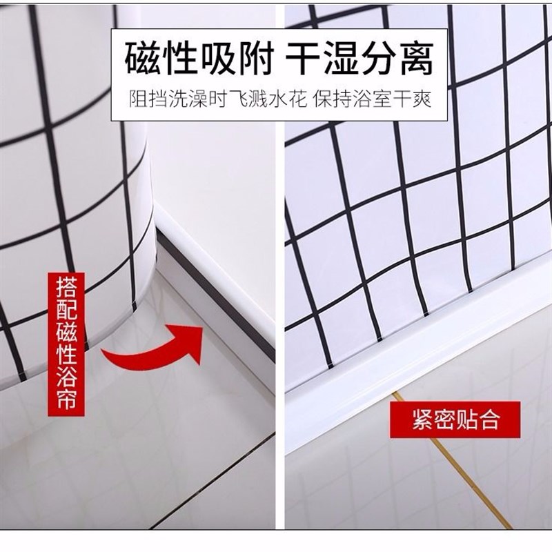 卫生间磁性隔断挡水条浴帘布套装防水免打孔弧形杆浴室帘干湿分离
