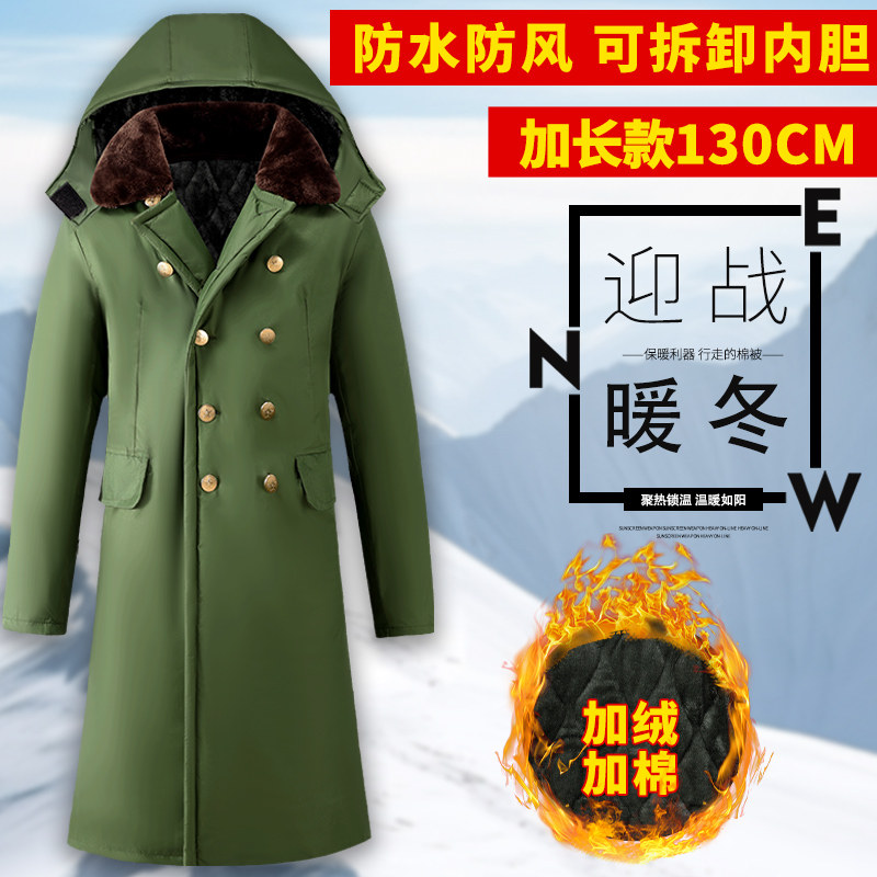 军绿可拆卸加绒加厚防水超长款棉大衣男过膝棉服防寒保暖冷藏库棉
