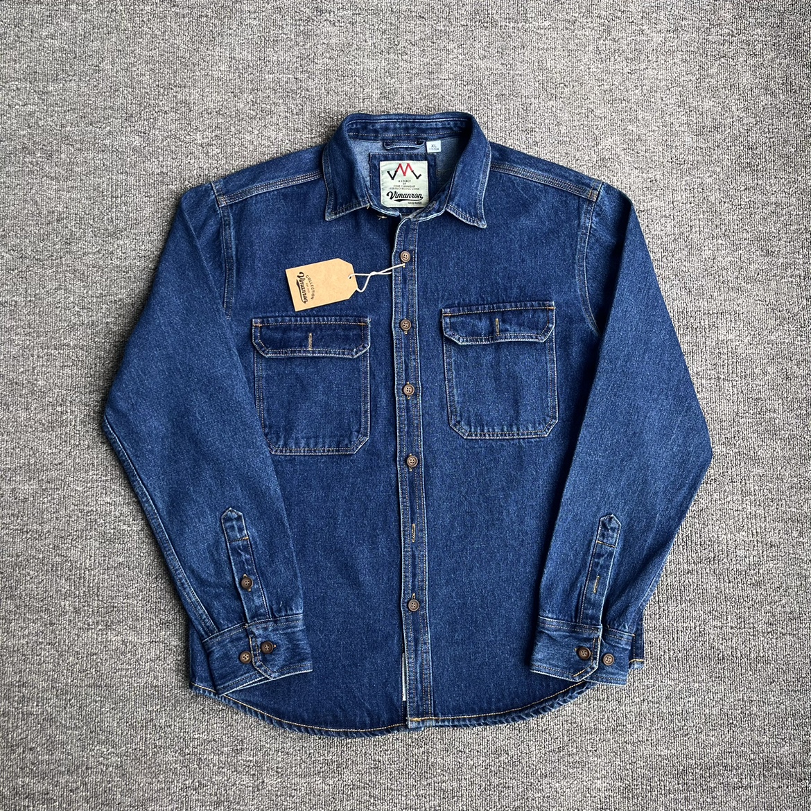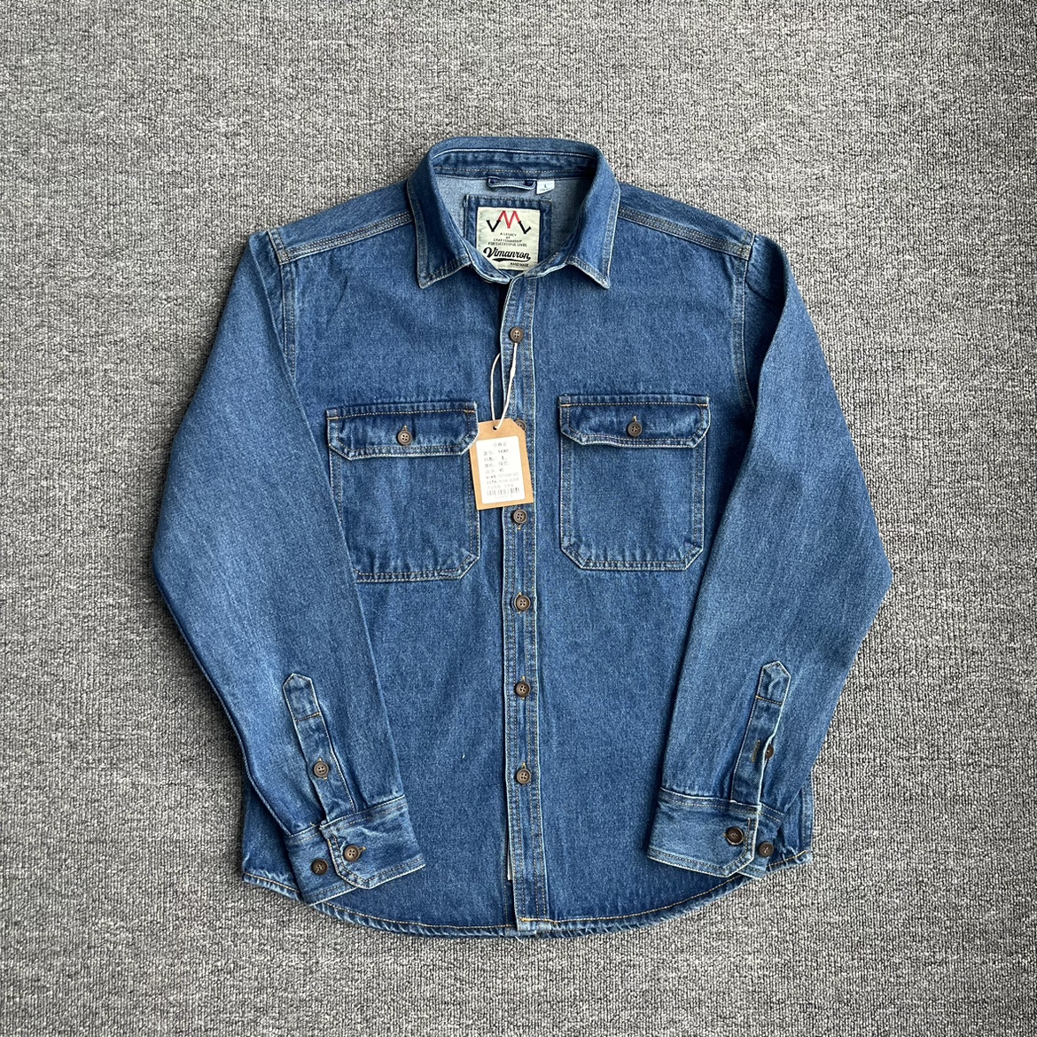 春秋款重磅大码水洗长袖牛仔衬衫男百搭休闲厚款宽松寸衣外套