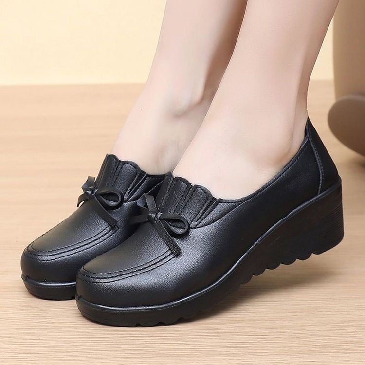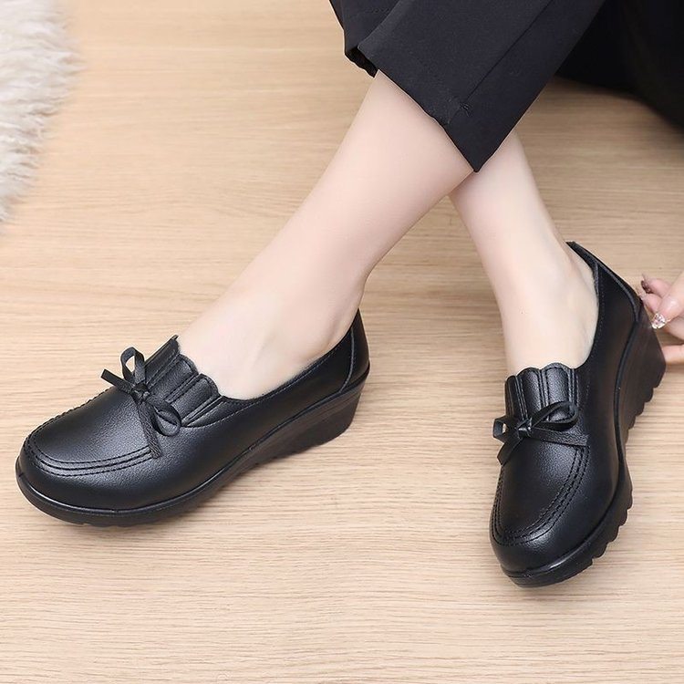 2026春秋软底妈妈鞋坡跟厚底中老年单鞋女上班鞋