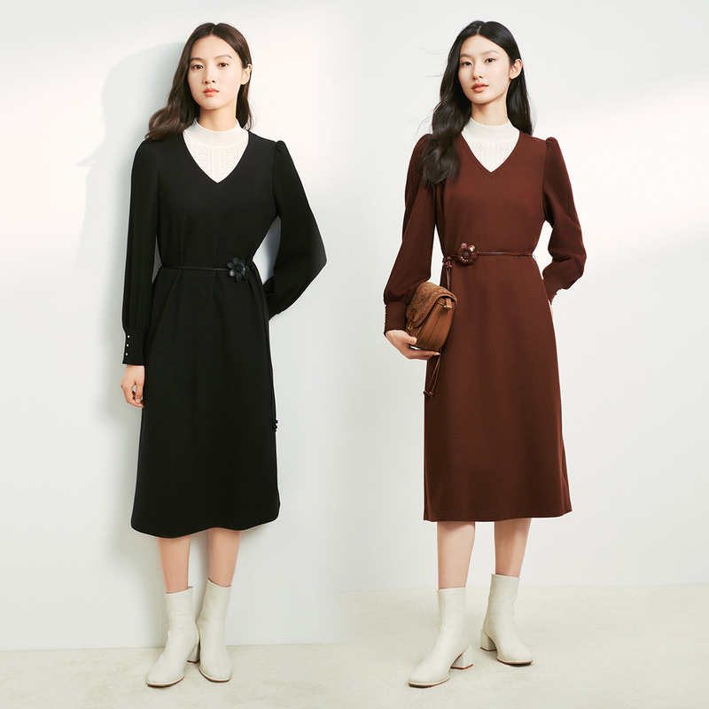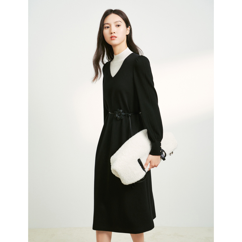 【美丽诺羊毛】ELSEWHERE珂思商场同款假两件连衣裙女冬季新款