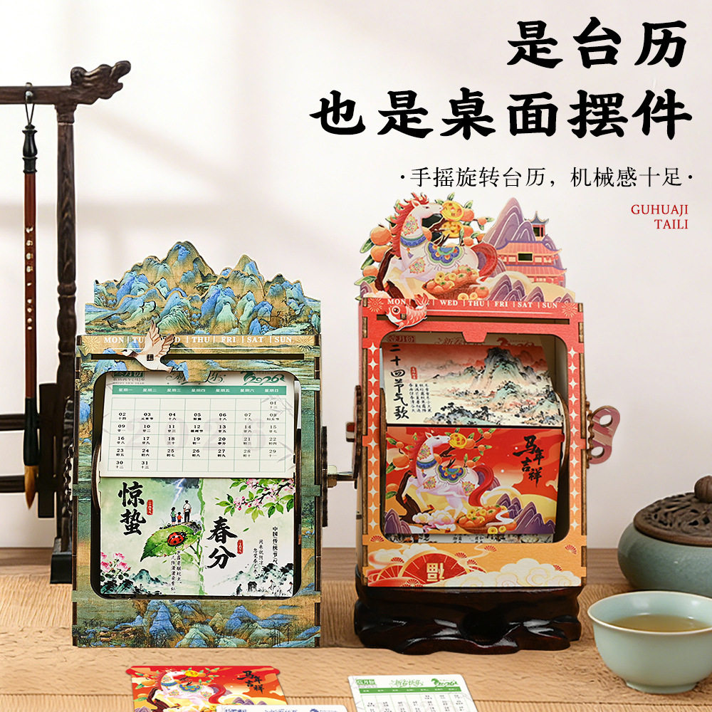 马年手工diy手摇机械日历翻页节气元旦节桌面摆件节气暖场活动礼