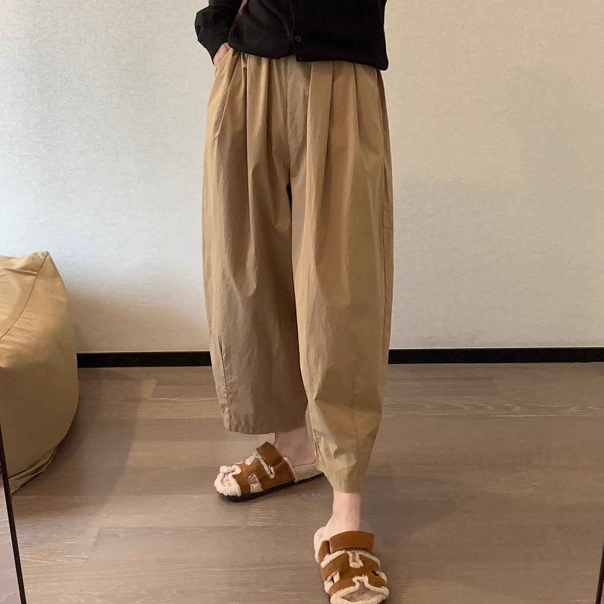法国CherryKoko梨形身材bi入~日系舒适显瘦松紧高腰休闲哈伦裤