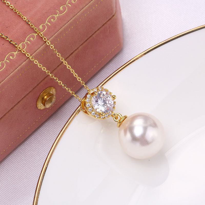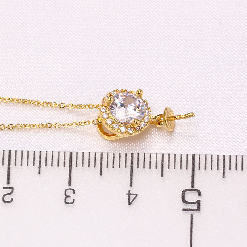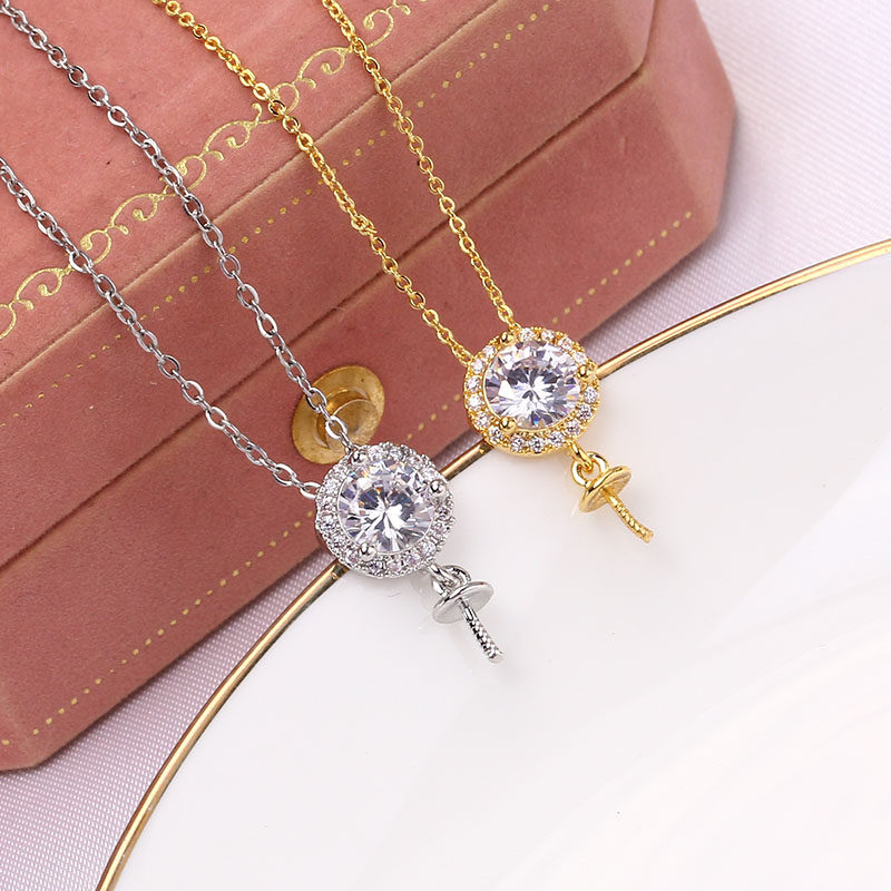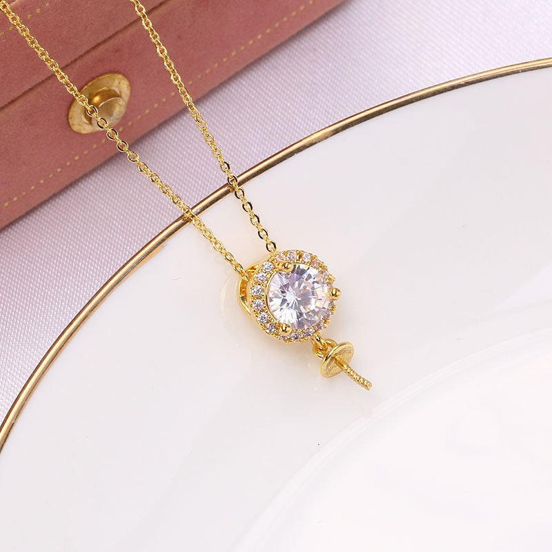 DIY珍珠配件空托 铜镀18K金大锆石珍珠玉石吊坠项坠托 简约气质女