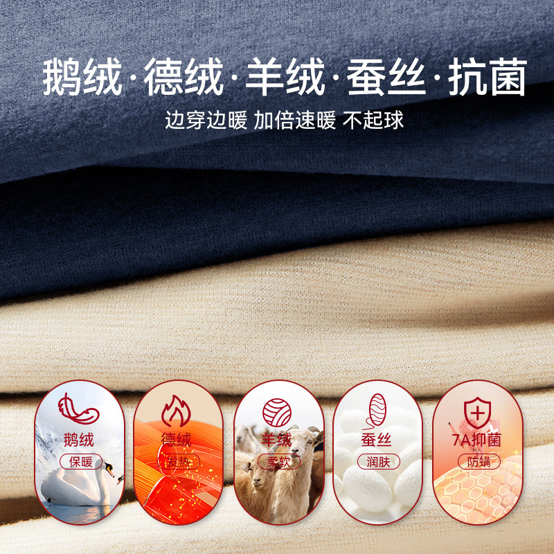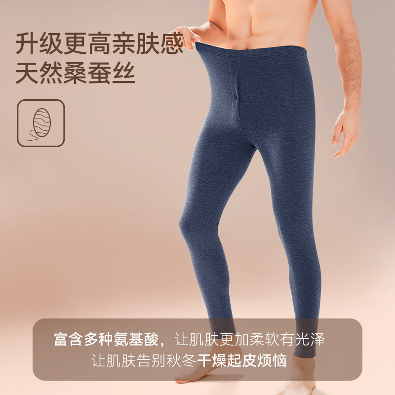 猫人男士秋裤羽绒保暖裤冬季加绒加厚款发热无痕打底羊毛蚕丝衬裤