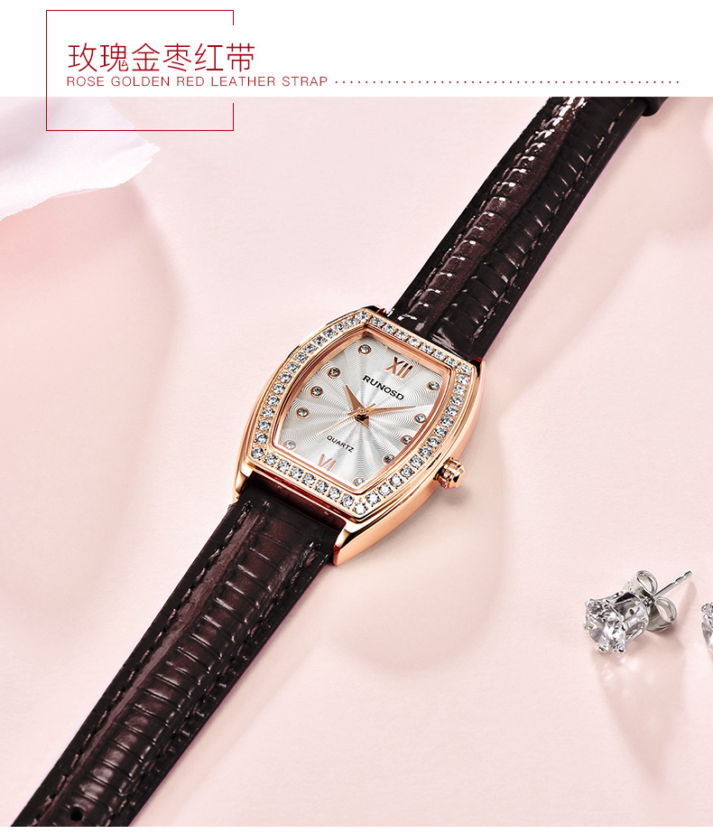 RUNOSD斯诺威登轻奢手表女士时尚简约气质长方形女表学生ins风