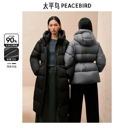 太平鸟收腰泡芙羽绒服女15D蓬松90白鸭绒保暖中长款连帽面包外套