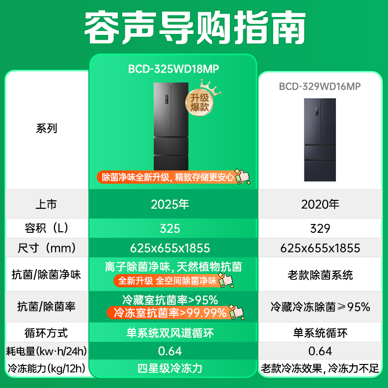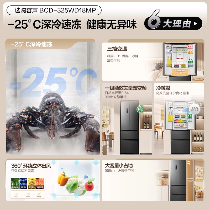 容声325L法式多门风冷无霜变频一级能效冰箱