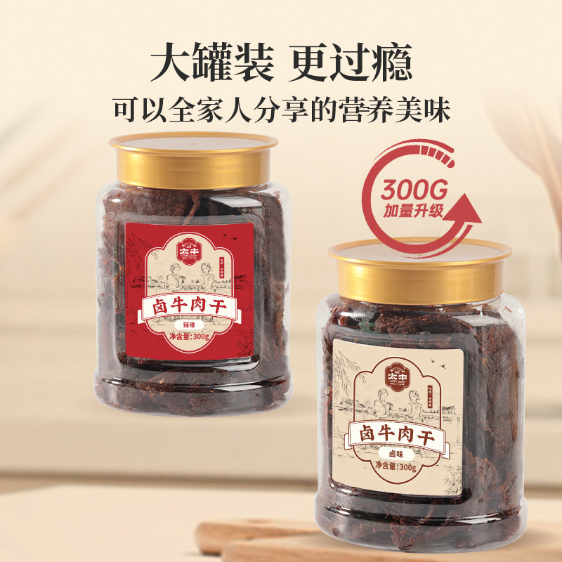 太丰300g古法卤牛肉干罐装升级大片手撕卤牛肉风干酱牛肉零食桶装