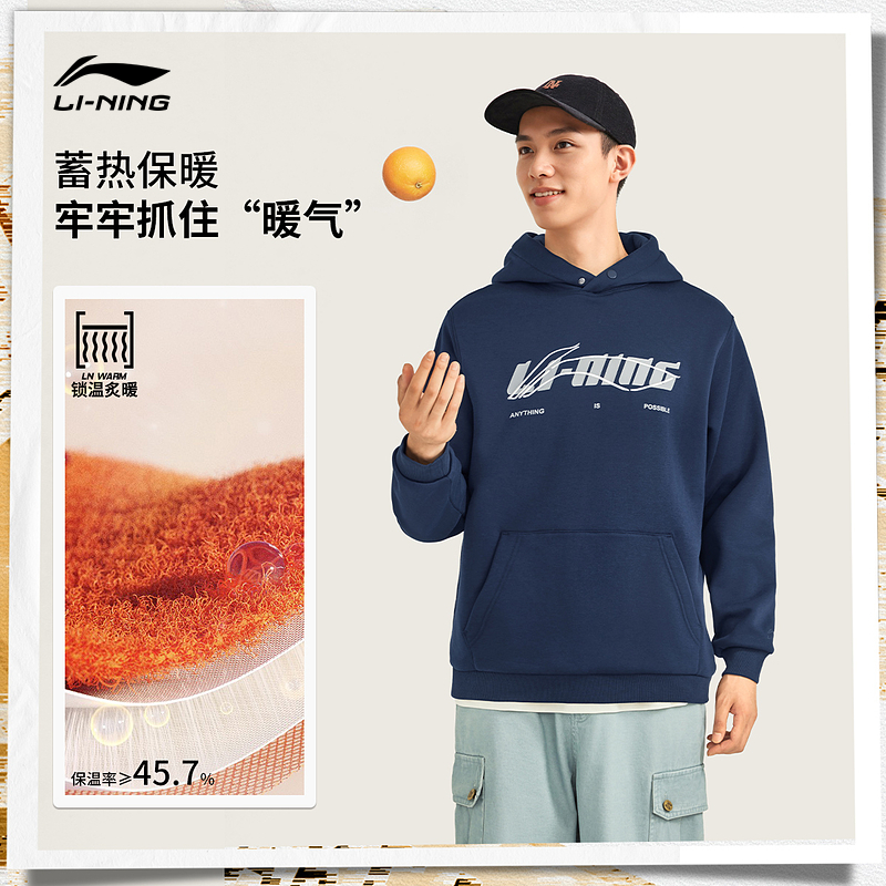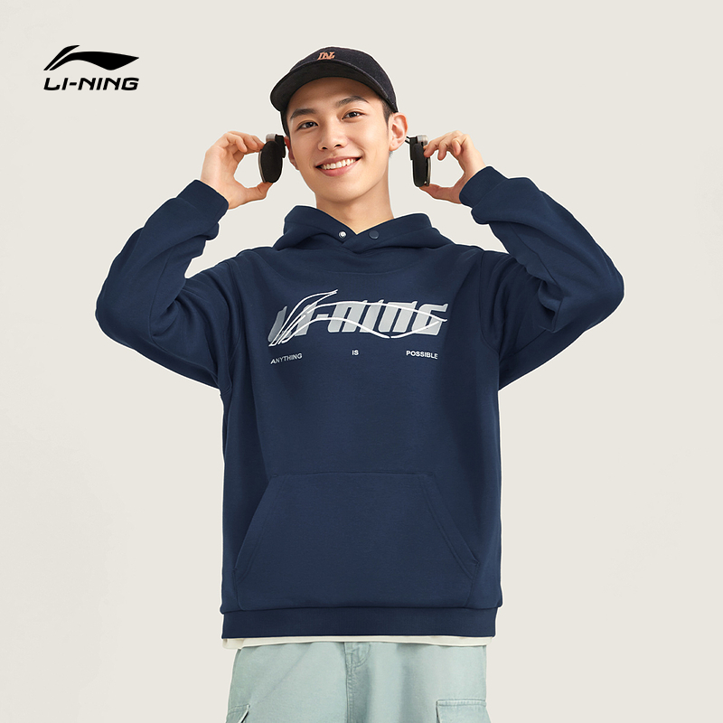 【25新品】李宁运动生活系列男女同款加绒保暖宽松套头连帽卫衣