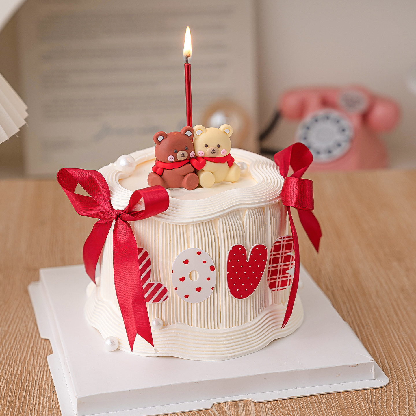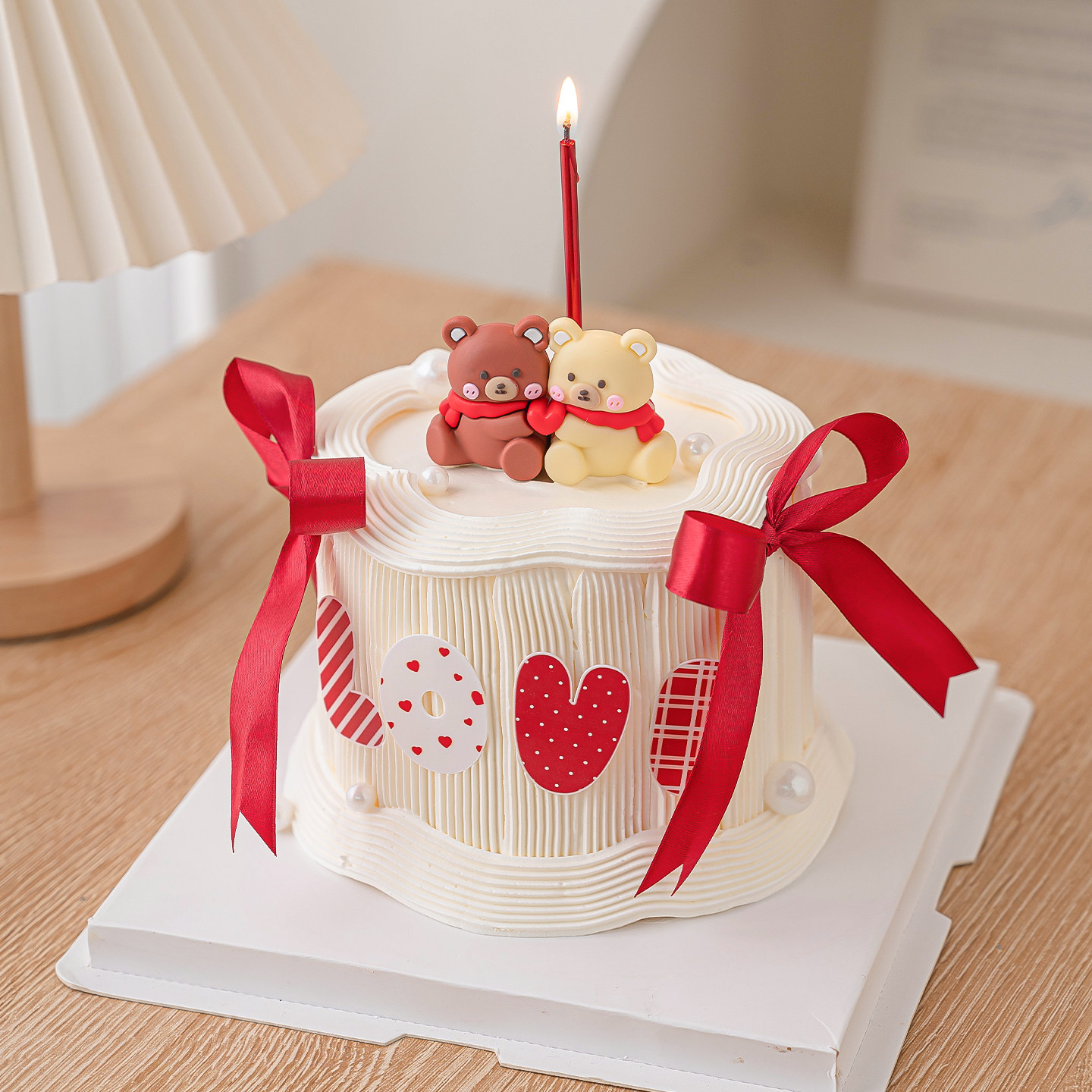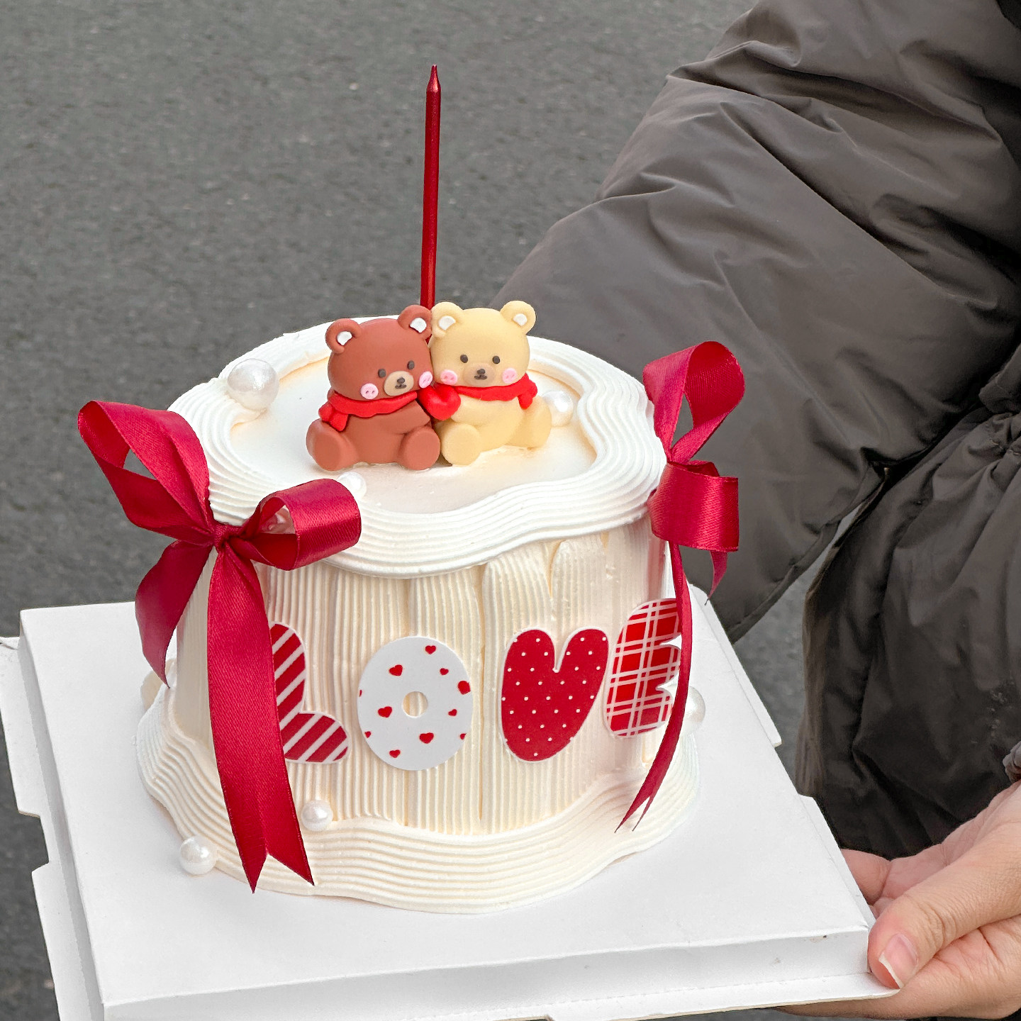 网红2.14情人节快乐围巾小熊蛋糕装饰摆件love亚克力烘焙装扮插件