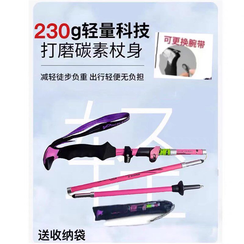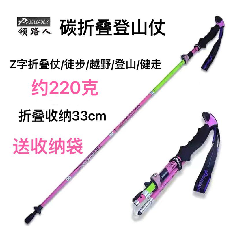 户外碳素折叠登山杖伸缩便携徒步登山折叠P杖越野爬山登山装备