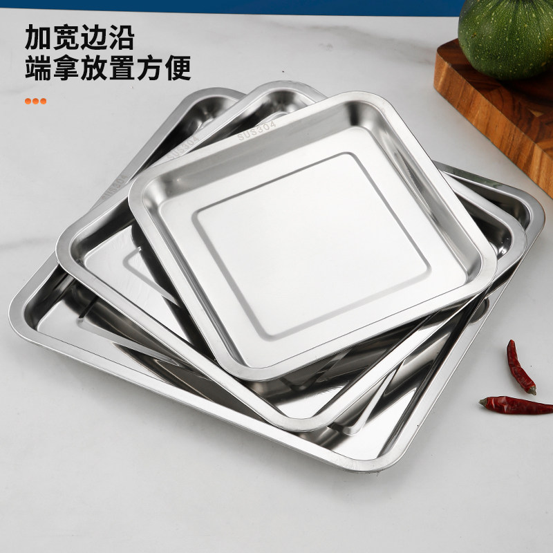 304不锈钢正方盘饭盘厨房打菜盘蒸饭盘烧烤盘托盘餐盘水果盘子