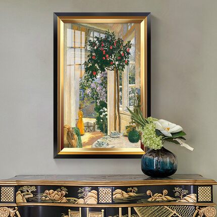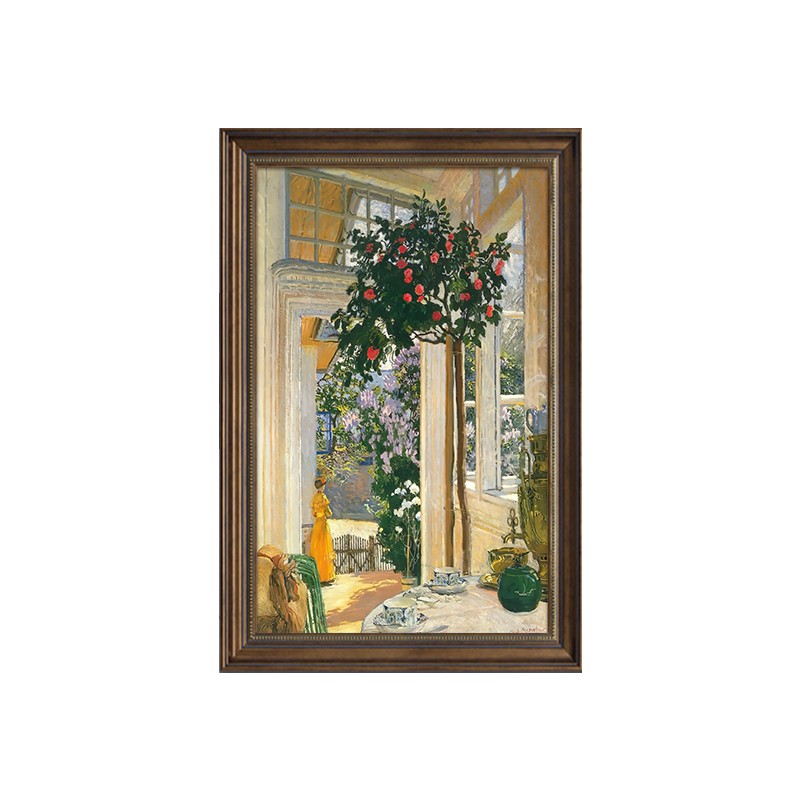 玄关装饰画美式阳光花开院子女欧式人物复古油画客厅书架鞋柜挂画