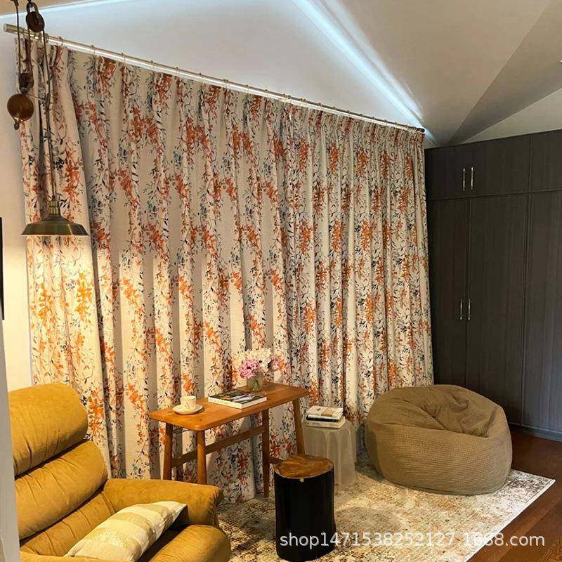 厂价新款美式窗帘遮光客厅卧室飘窗棉麻田园风印花面料布料
