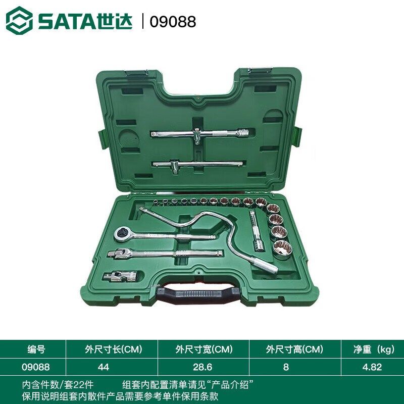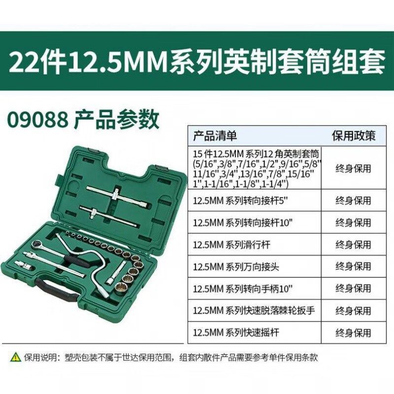 SATA世达工具22件12.5MM系列英制套筒组套 大飞英制套装 09088