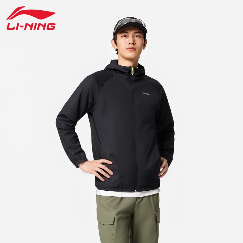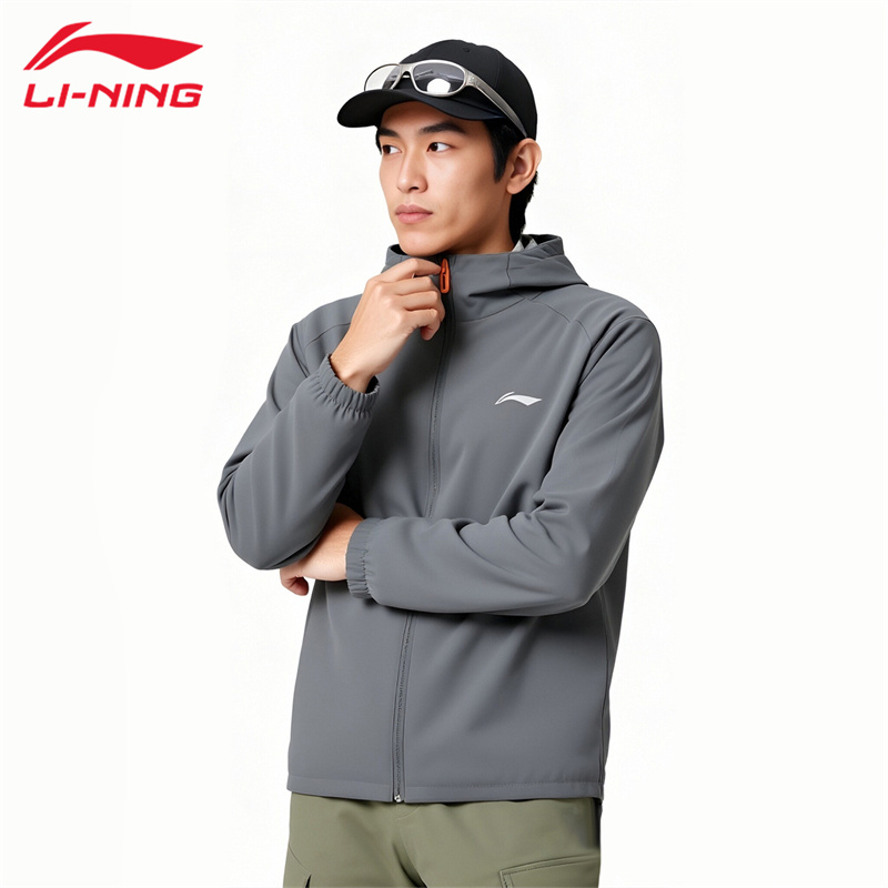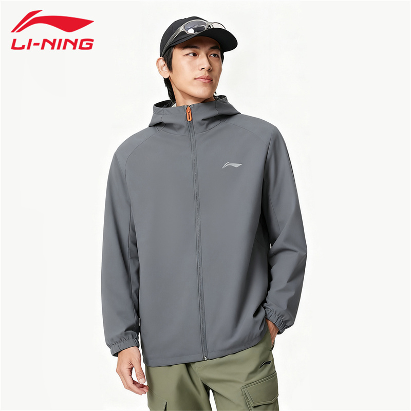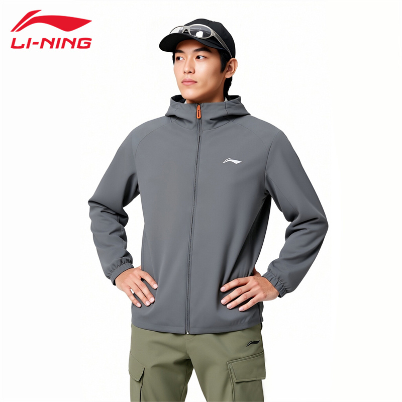 李宁运动风衣男春秋户外运动休闲防泼水防风开衫连帽外套AFDVK37