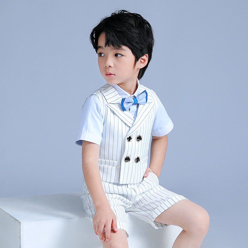 2023男童礼服夏装新款儿童背带裤马甲套装帅气钢琴主持合唱演出服