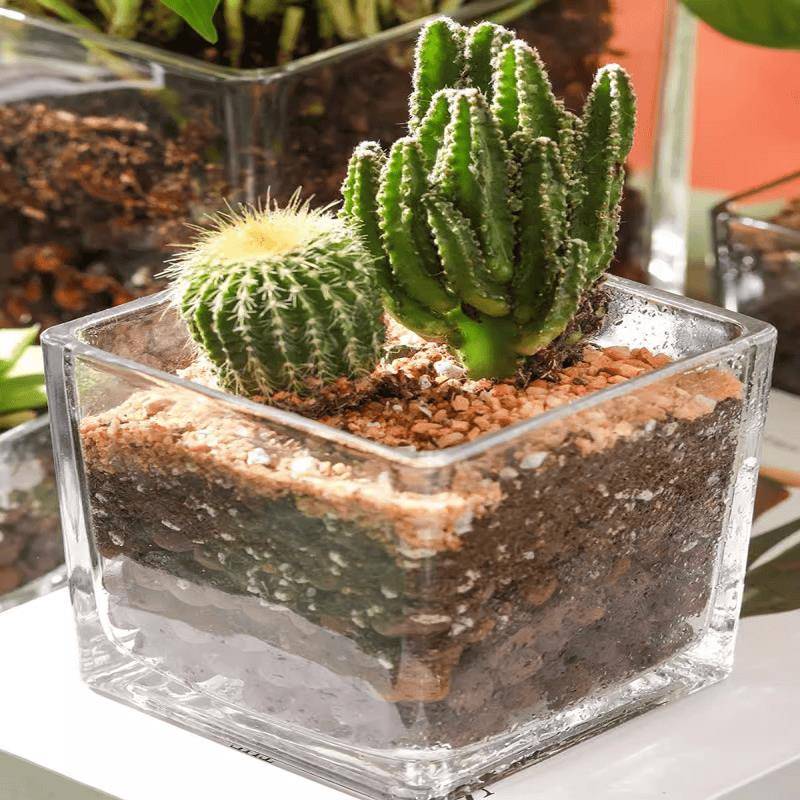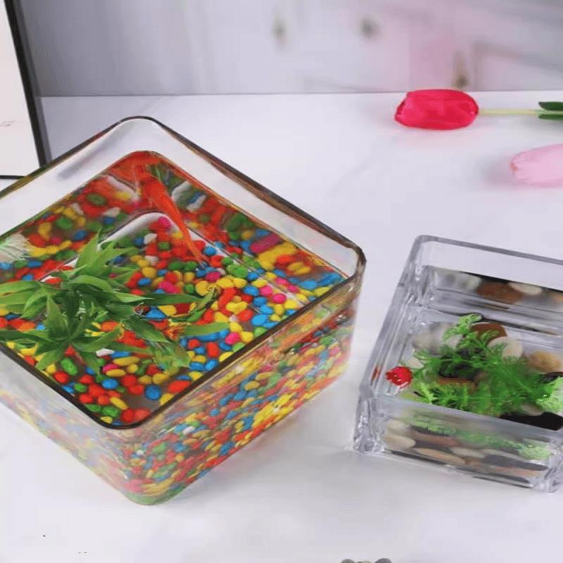 创意水培器皿花瓶摆件透明玻璃缸花盆插花黄金葛植物正方形装饰桌