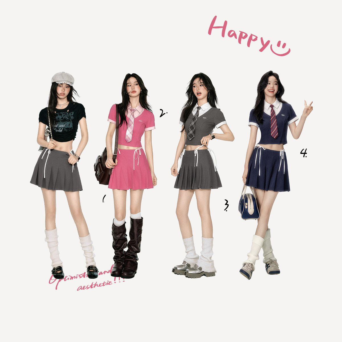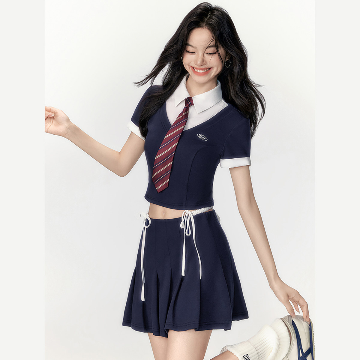 EPTISON套装裙女2025夏季新款假两件时尚衬衫a字半身裙甜辣两件套